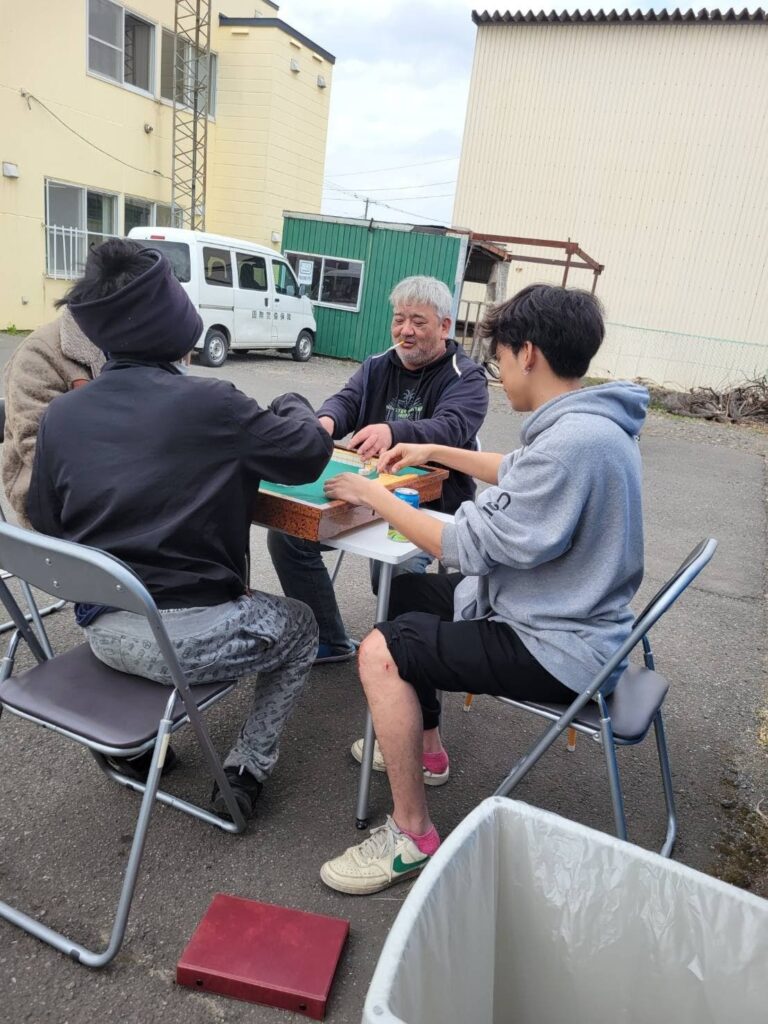 中には麻雀をするものキャッチボールをするもの黙々と食べ続けるものもいて楽しい空間が広がる和気あいあいとする状況でした!!